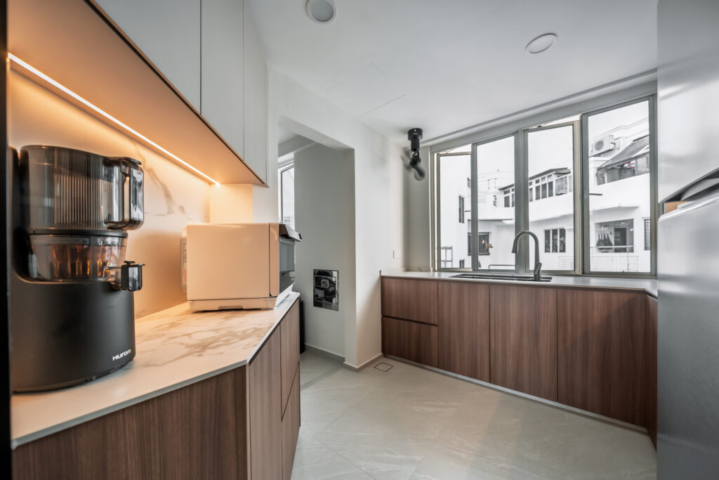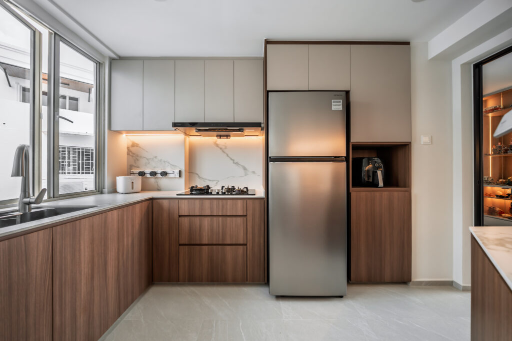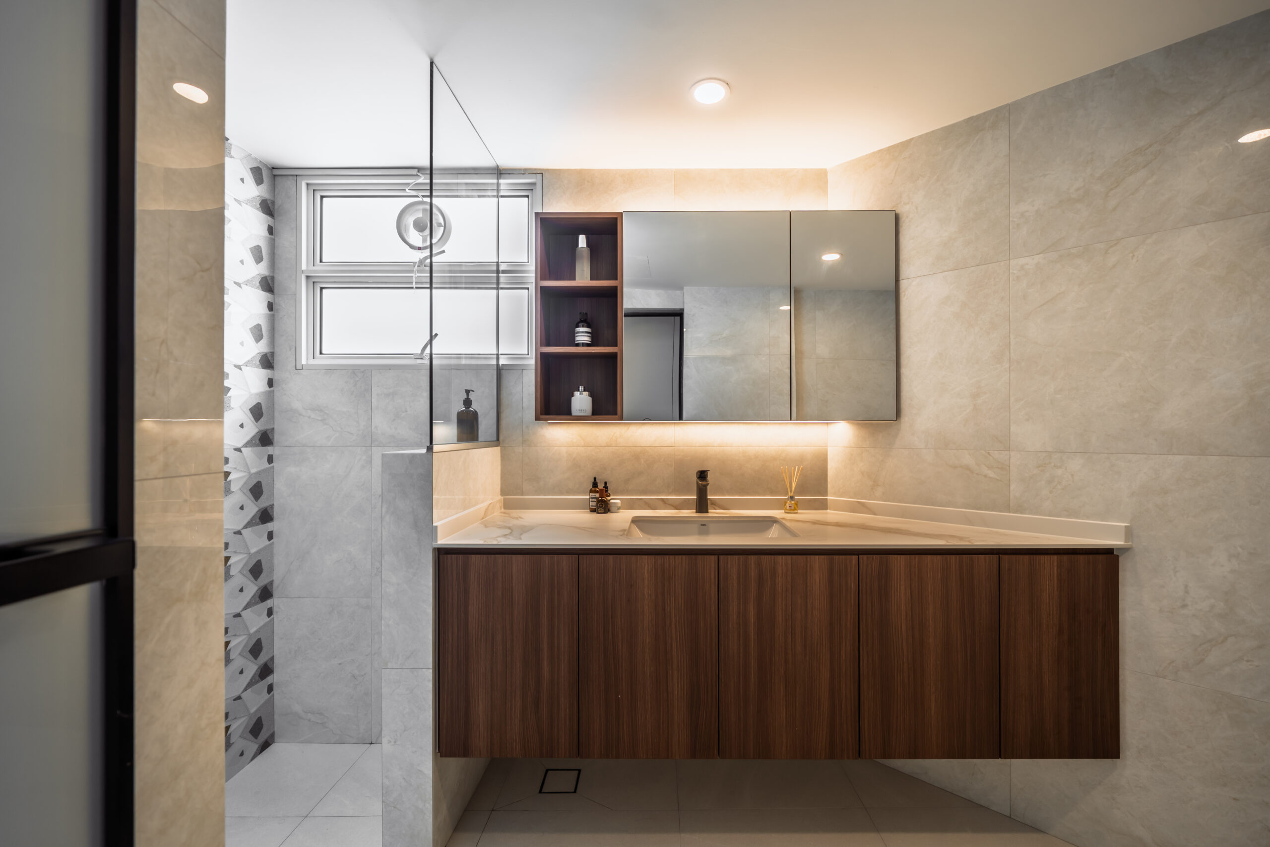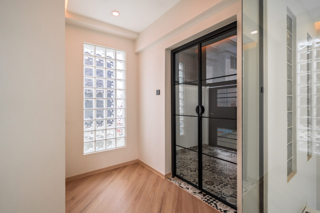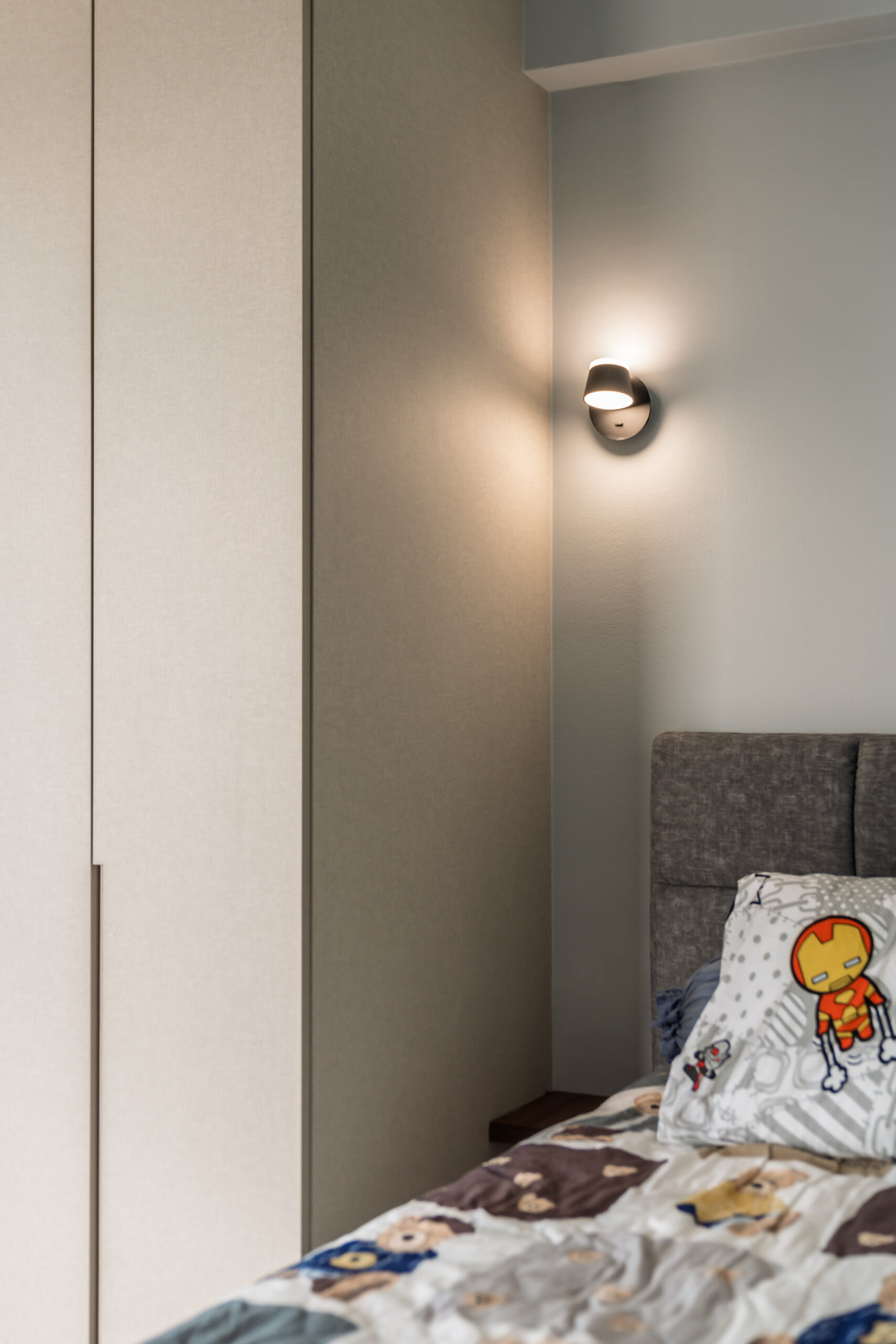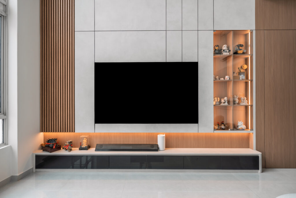 The palette in this home stays intentionally restrained — soft neutrals, warm whites, and subtle textures, allowing the architecture to take center stage. Full-height cabinetry along the wall enhances the verticality, while keeping storage seamlessly concealed for a clean, uninterrupted look. It’s a home that doesn’t try too hard, because when proportions, light, and restraint come together like this, the result speaks for itself.